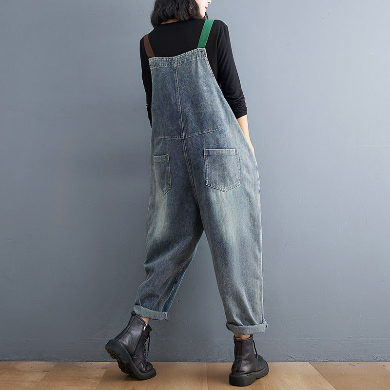 Hip Sister Clash-colored Shoulder Strap Jeans Overalls