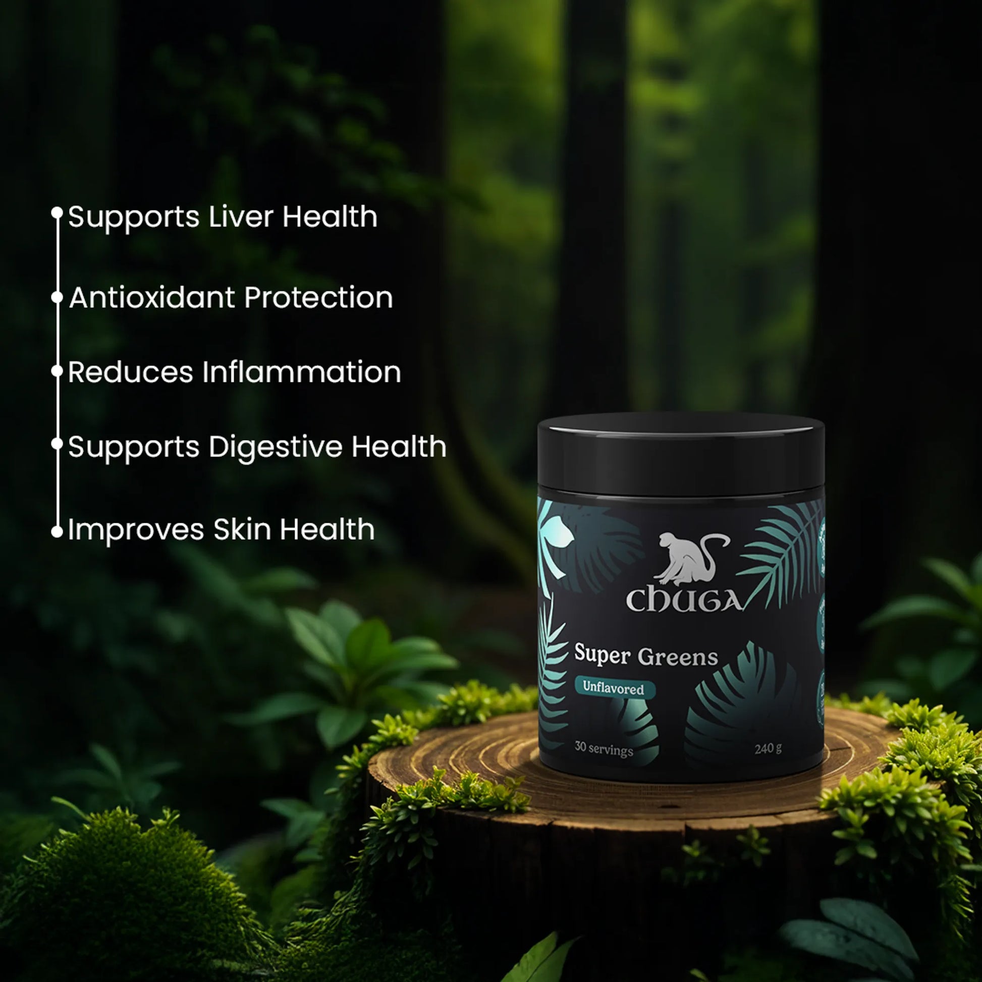 Discover the perfect blend for a healthier, happier you with Chuga's Super Greens!
